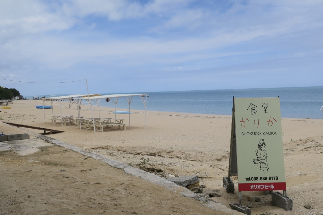 新原ビーチにあるネパール料理のお店です。「オーシャンビュー」とか「海の眺め」とか、そんなせせこましいレベルではなく、もう、オンザビーチ!海の家のごとく、ビーチに在ります。席は全てオープンエアー。駐車場はお店の裏にあり、食事利用で90分無料。