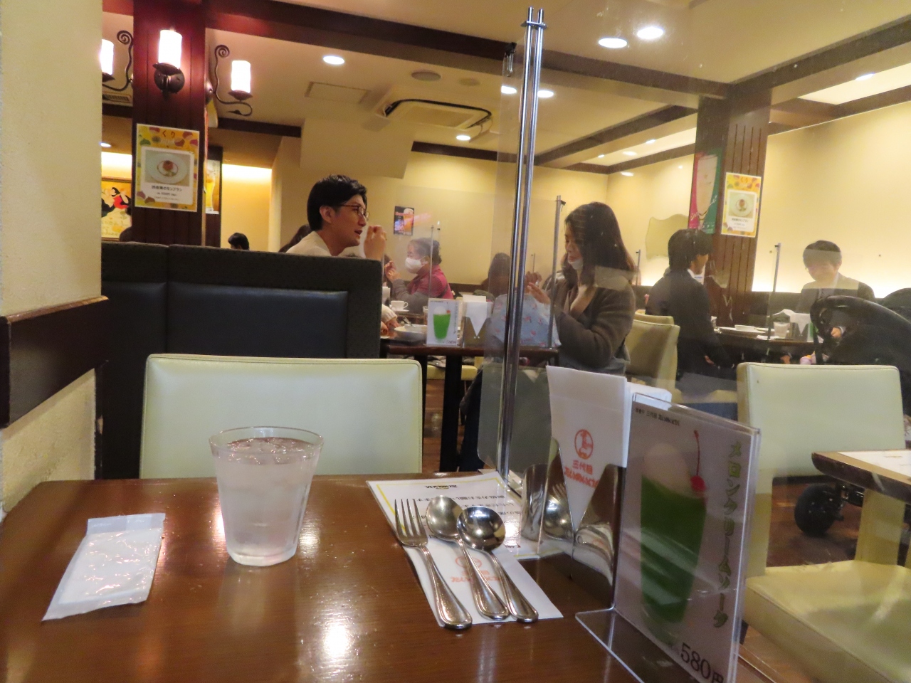 各テーブルはアクリル板で区切られていたし、お客様が変わるごとの消毒も、粛々と進められていました。