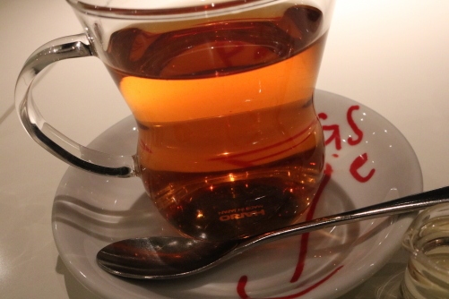 京都タワーが見られます。「巨峰のハーブティー」をいただきました。最初はそのまま、途中でハチミツを加えていただきました。