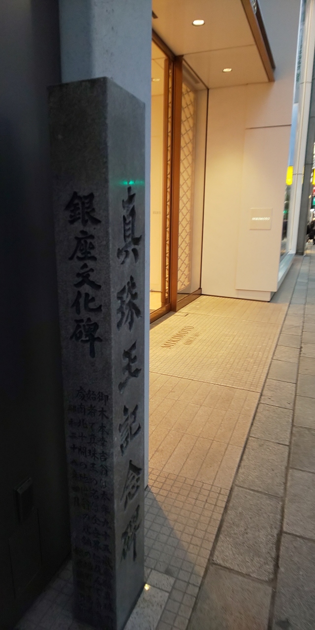 技術が大変難しかった当時、地道に努力してきた結果世界的にも大きな真珠専門ジュエリーブランドをつくることができたのだと思うので、この石碑は彼の努力を通行人に知らしめるミキモトの自慢となる石碑なのだと思います。