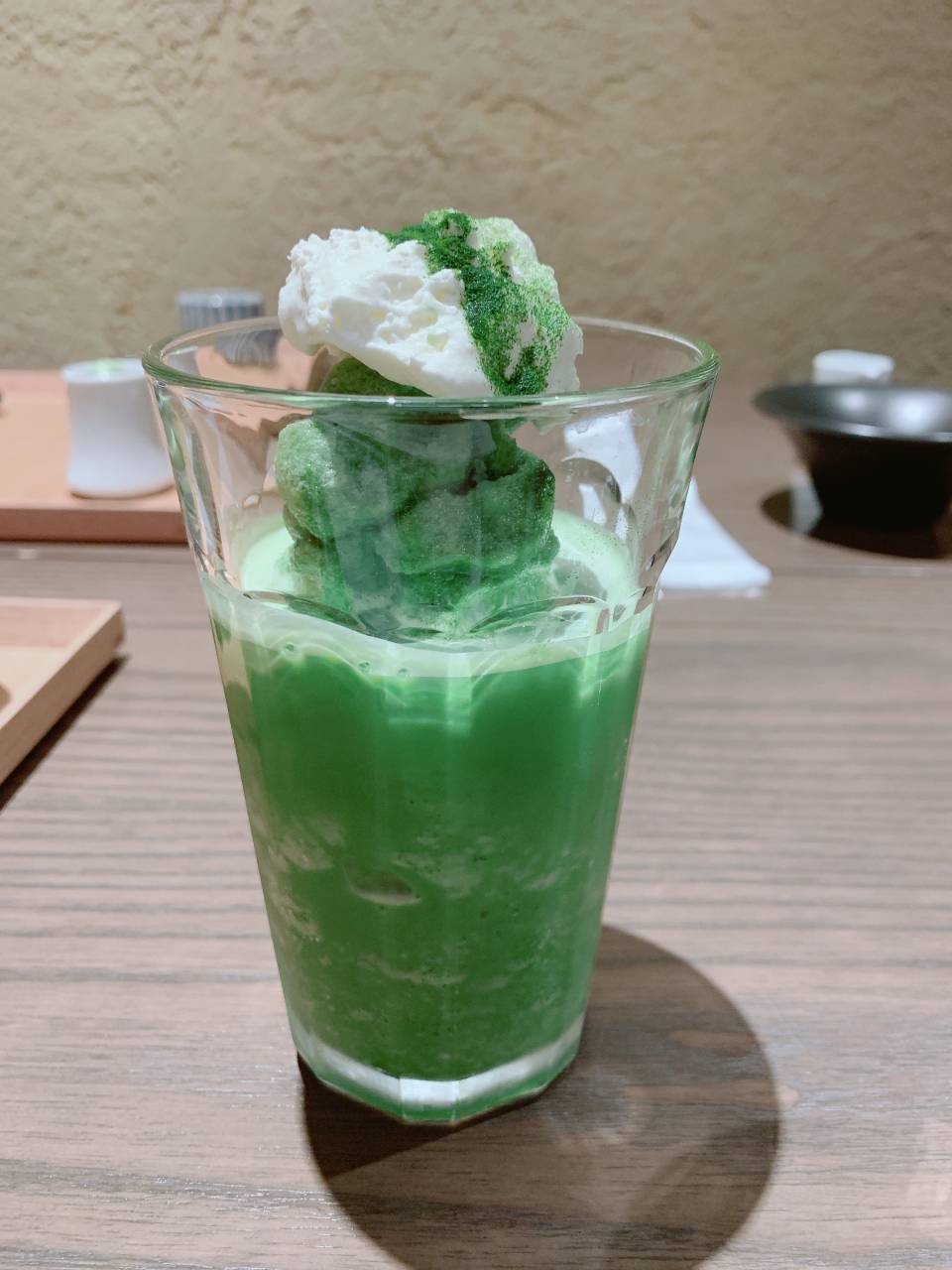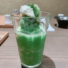 堺の茶寮がなんばのスカイオにも入っています。久しぶりにおいしいお抹茶をいただきたくて行きました。どれもおいしそうでパフェか迷いましたので清涼感がほしくてドリンクに。シャリシャリで甘くないのがふしぎな口当たりでした