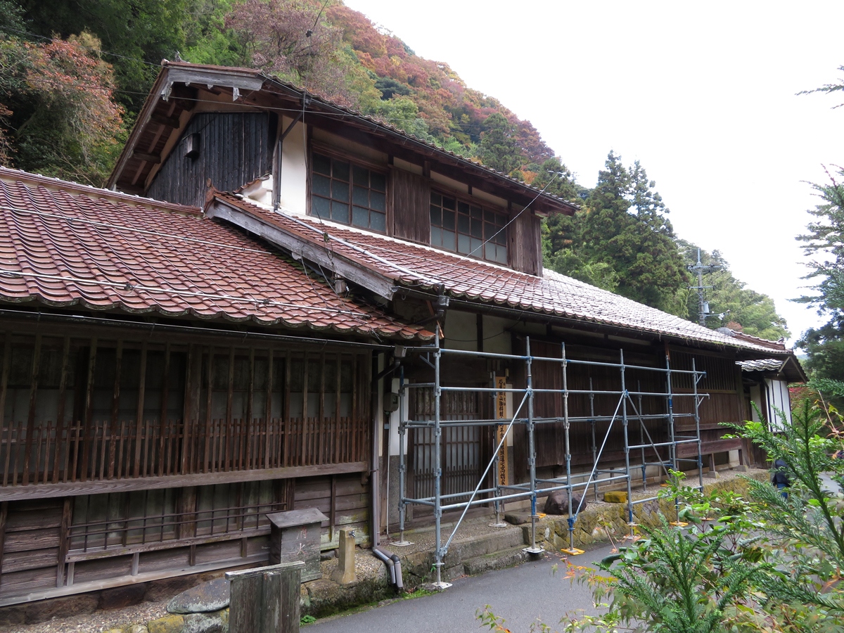 大森の集落から龍源寺間歩へ向かう途中にある家屋で、山に入り人家がまばらになった場所にひっそりと立っています。内部の見学はできませんが、解説板が立てられています。坑道で働く採掘者のまとめ役を担った方の家屋ということで、龍源寺間歩に近いこの場所に建っているのも納得です。赤い石州瓦が石見銀山内の他の集落と共通しており、落ち着いた印象の家屋です。龍源寺間歩への経路上にあることから、見ておきたい場所の一つです。