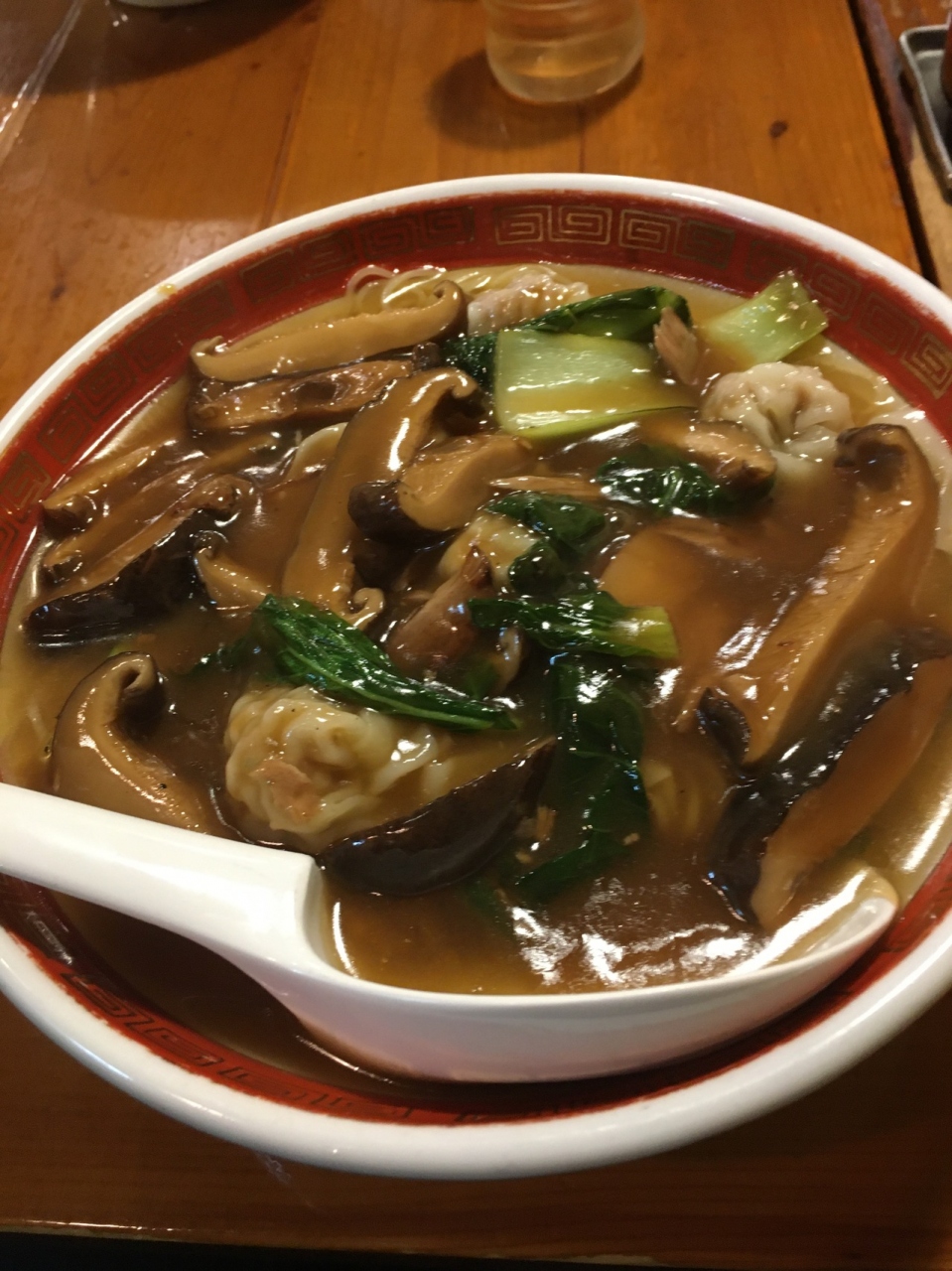 普段は坦々麺を食べていますが限定しいたけあんかけは沢山のスライスしいたけが入っていてしいたけ好きには珍しいラーメンだと思いますが椎茸がしょっぱく想像とは違い私は残念でいつもの坦々麺にすれば良かった、もう少ししたらスーラータンメンも並ぶしと思いました。