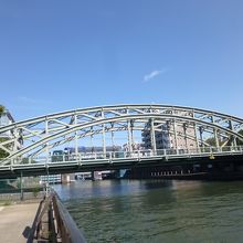 万年橋通りが小名木川と交差する部分に架かる橋です。小名木川に架かる橋の中では重厚感があります。通りと橋で「万」と「萬」と文字が異なるのがややこしいです。現在の橋は1930年に架けられたものですが、その歴史は古く、北斎や広重の浮世絵にも描かれています。浮世絵の風景と現在の光景を見比べてみるのも興味深いです。