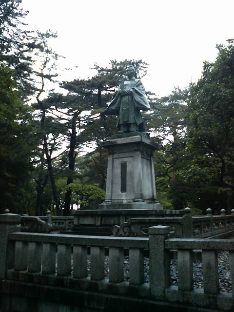 細長い台座の上で凛々しい姿で立っていて、江戸時代にこの地(出羽久保田藩)を治めた最後の藩主だった人とのこと。