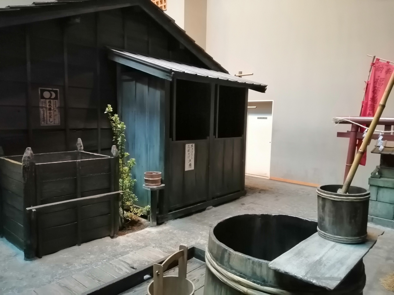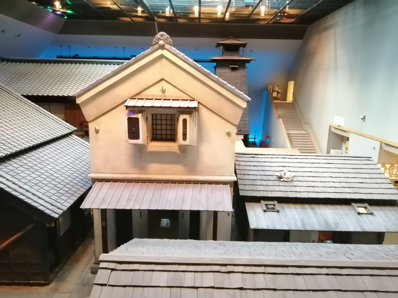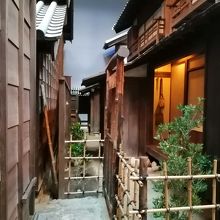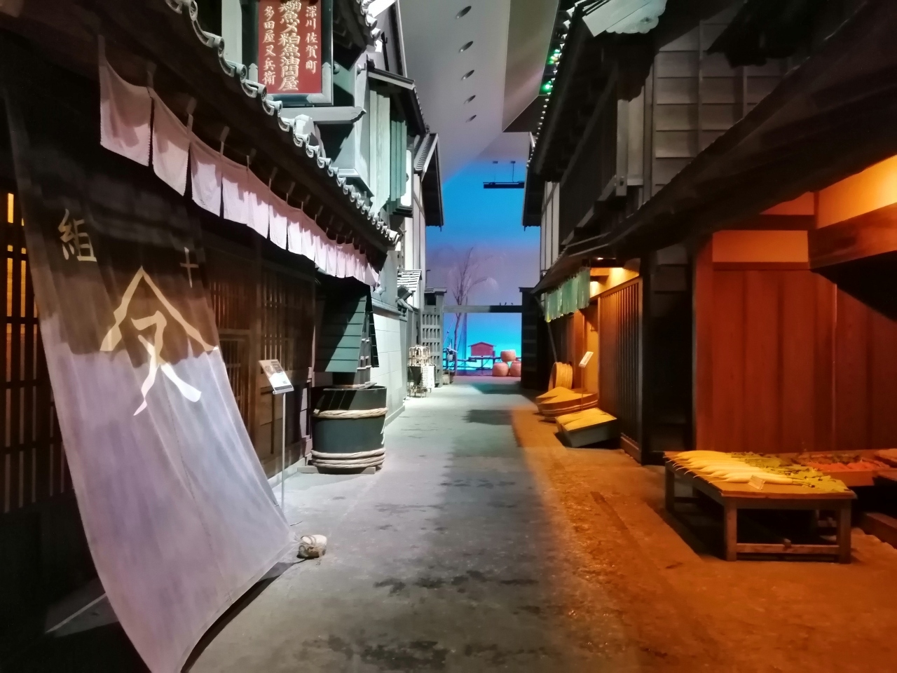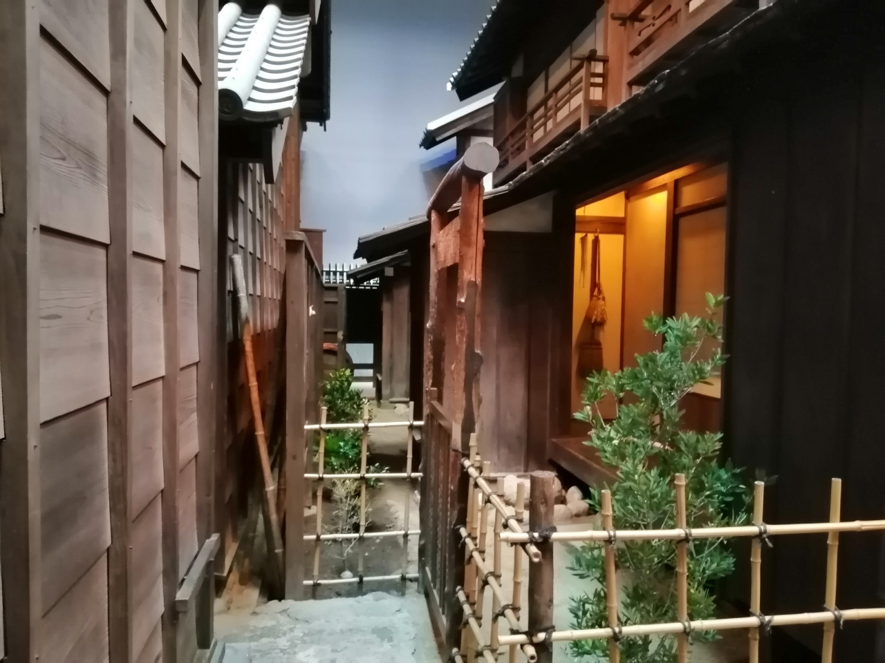 地階に江戸の街並みが再現されています。時々猫や鶏が鳴いたり、一日の移り変わりを照明変えて表現したり、季節ごとに展示を変えるなどの細かい演出がされています。