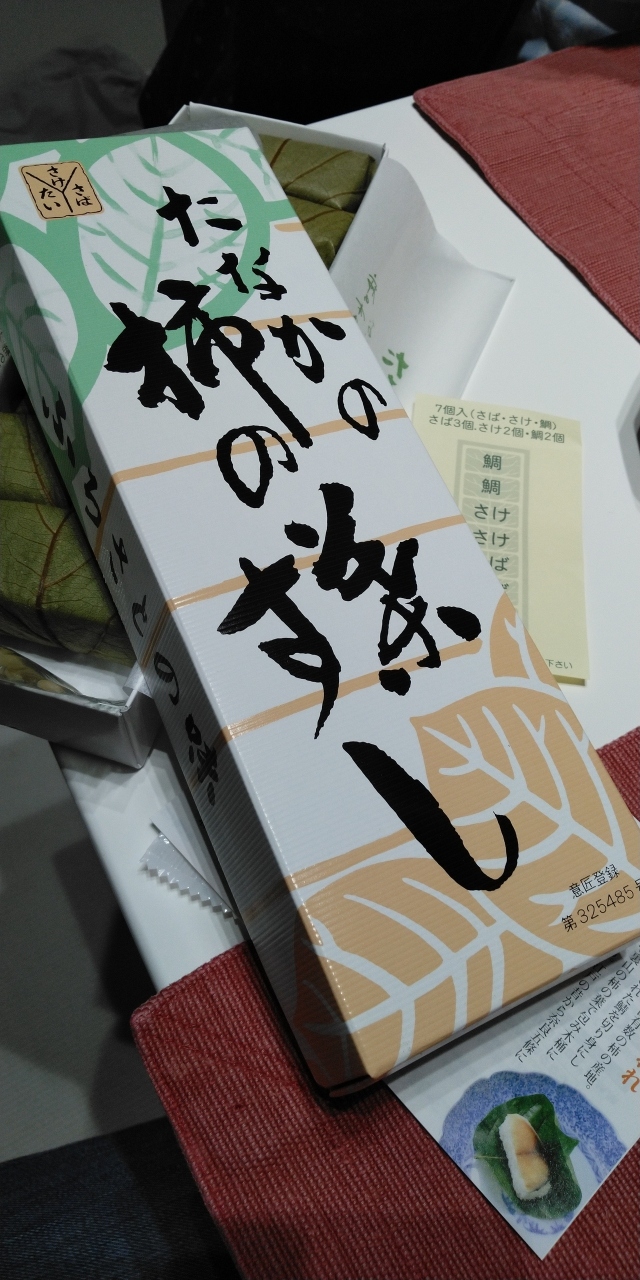 内容的には たい 鮭 鯖の三種類が 7個入っていて 1000円以下と言う お値段は ちょうど良いと思います。 柿の葉に包まれている理由は 腐敗防止ということで なかなか柿の名産地の 物を うまく使っていると感心しました。