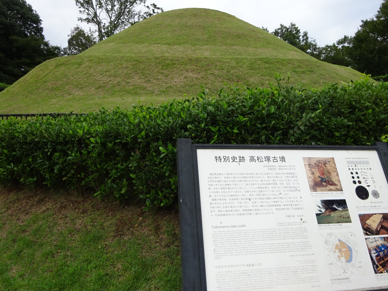 幹線道路から行った方が恐らく楽に行けたのだと思います。また、後日、吹田市にある関西大学の高松塚古墳壁画再現展示室に見に行ってレプリカの石棺に描かれた壁画を見てきました