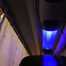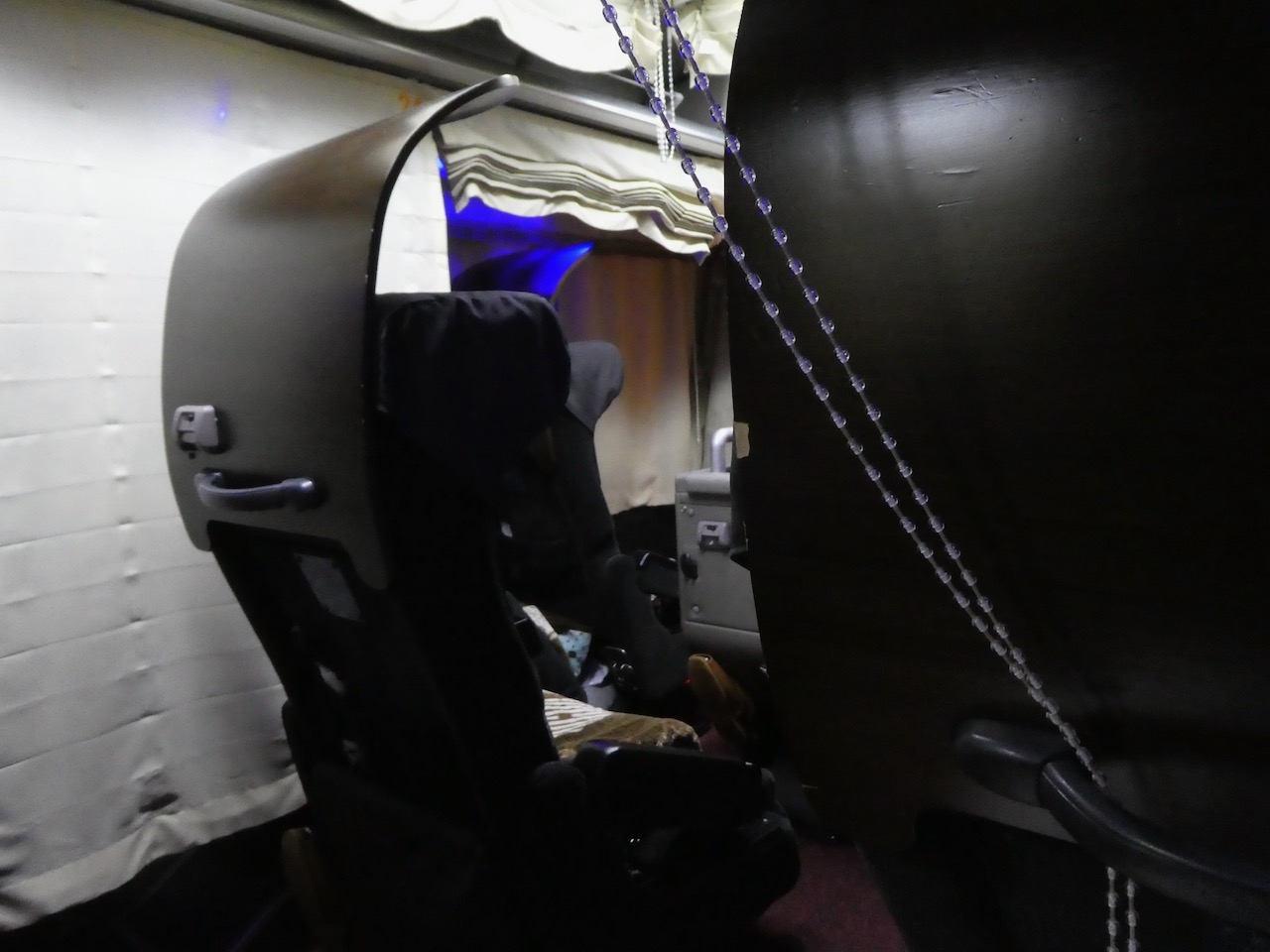 全席ブラインド付き。カーテンじゃないので高級感。ブルーのライトが眠りを誘います。