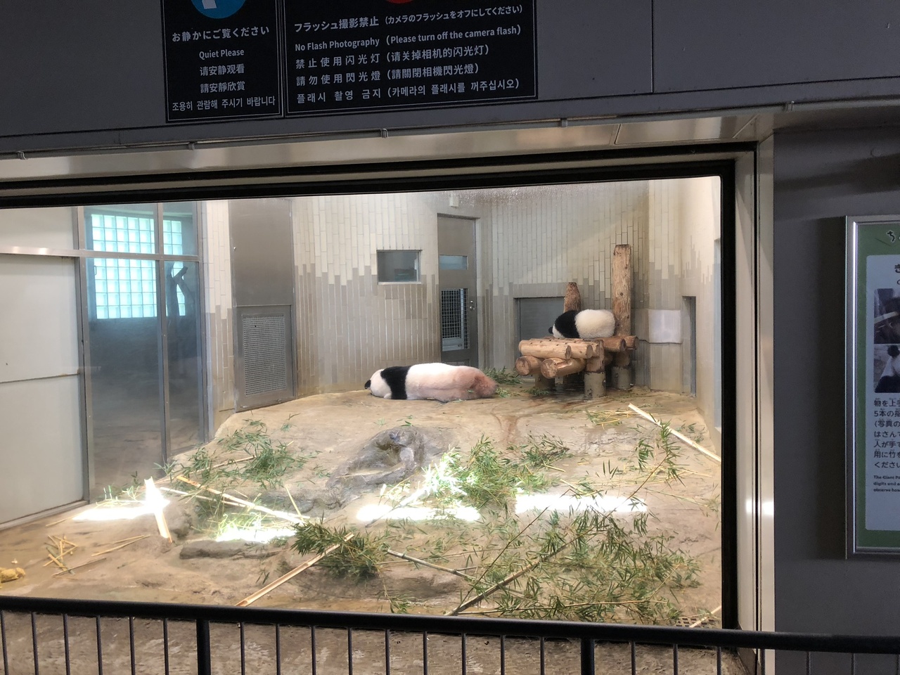 名作「かわいそうなぞう」を読んでから、終戦記念日に行きました。目的は動物慰霊碑だったけど、やはり来たからにはパンダ。真夏なので、いつもよりはお客さんも少ないようでしたが、並んでました。そして、順番に見ていくのですが、背中向けて寝てました(笑)