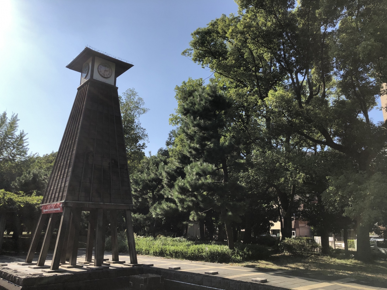 清澄公園の入り口部分にレトロな時計台が経っています。かつて兵庫県の出石市で見た「辰鼓楼(しんころう)」という時計台とイメージ的に重なるものがありました。逆光だったのが残念ですが、周囲を緑に囲まれ聳える姿はとても印象的でした。清澄公園のシンボル的な存在だと思います。