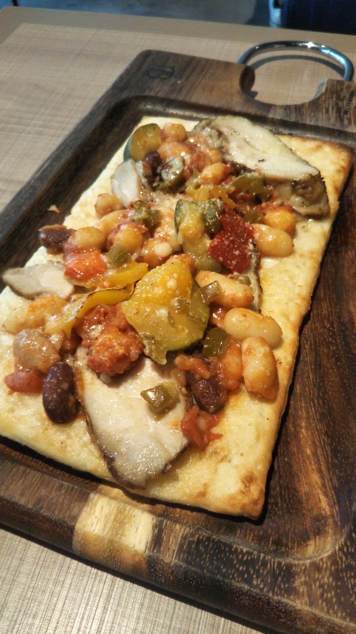 ピザはビスケットの食感に近いパン生地に、チーズはほんのりベースで豆の味が際立っていて自分にはちょっと合わなかった。