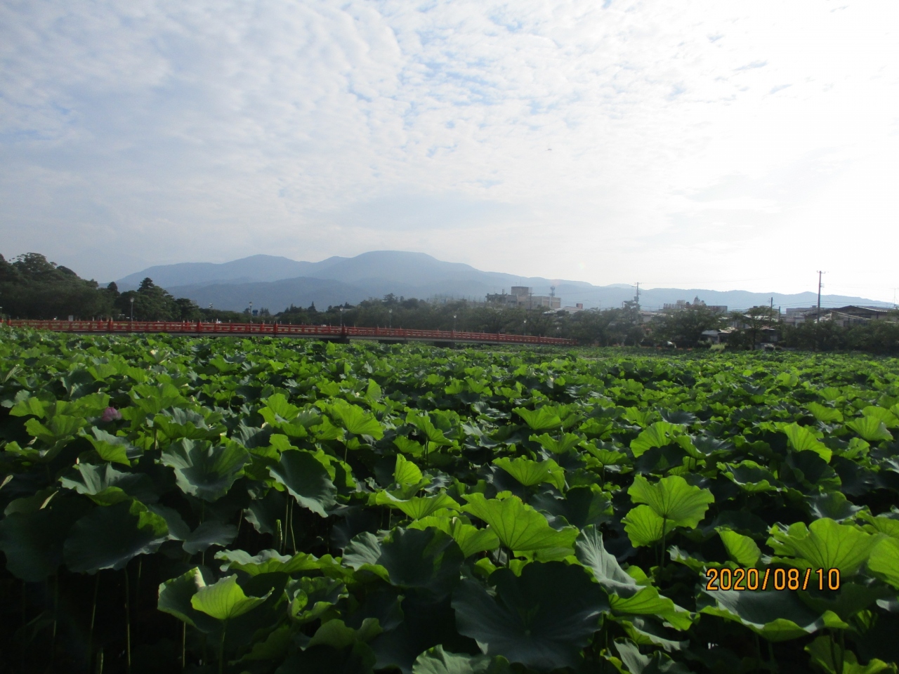 毎年夏に開かれていた「上越蓮まつり」は「高田城址公園観蓮会」と名称変更されました。公園の外堀は、蓮で埋め尽くされ、堀の水面が見えないくらいになっていました。これほど大量の蓮を見たことはありません。その様子は圧巻の一言に尽きます。