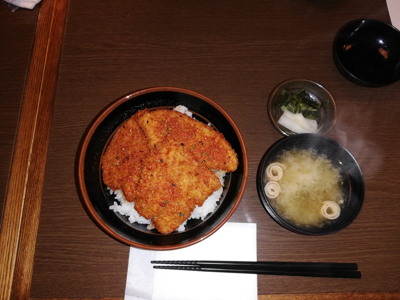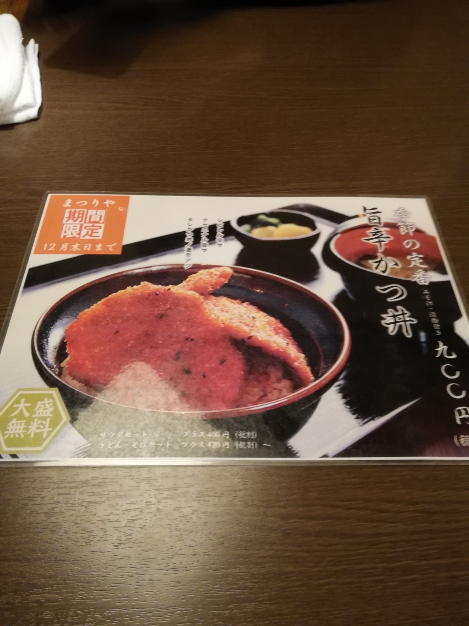 みなさんこんにちは、ふとももぷるぷるです。2019年12月31日に新潟県新潟市の新潟駅南口にある新潟かつ丼政家でかつ丼を頂きました。本日は、普通の新潟かつ丼では、なく店員さんおすすめという期間限定の旨辛かつ丼を頂きました。カツも3枚のっておりお新香とお味噌汁が付いてご飯も大盛り無料で900円です。揚げたてでとても美味しくおすすめです。