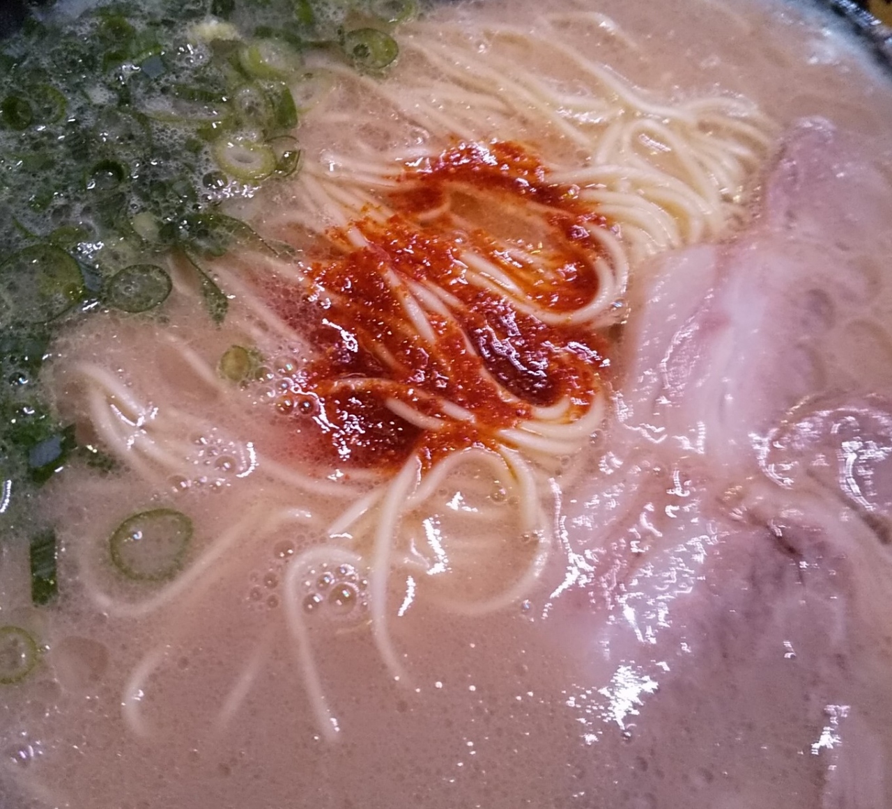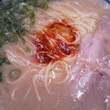 とても高級感のある美味しい博多とんこつラーメンでしたが通常の長浜ラーメンとよや違う感じでたっぷりと煮込まれた雰囲気です。赤い唐辛子の量の違いでと違う博多料理になってしまいますが赤い唐辛子は少し少なめで濃いめの固めの麺で頂いたのは美味しかった。