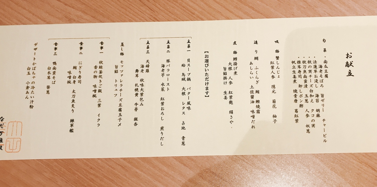 秋の懐石 「なだ万 雅殿 札幌店」 札幌市南10西3