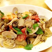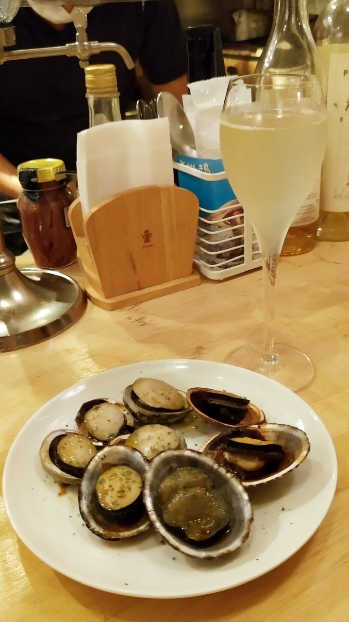 新鮮な島素材で作るイタリアンが人気の「島むん+」を予約して利用。予約が取り難いお店なんですが、コロナのおかげで当日予約(カウンター席)OKでした。店内もオシャレですぅ♪白ワインで♪(*^^)o∀*∀o(^^*)♪カンパーイ焼きトコブシとアサヒィ(大きめの貝)貝の旨味が凝縮!トコブシはコリコリ、アサヒィはもう少し弾力がある感じ。夜光貝のソテーに島魚のアクアパッツァが来ました♪(^o^) メインの魚は「フエフキダイ」の仲間だそうです。もう言うことありません!めっちゃ美味しい!!(*≧▽≦)ノシメは、イカスミ炒飯。はい、リゾットではなく、チャーハンです。これがまた、ビックリするほど美味しい!イカスミ特有の磯臭やクセが全く無く、あるのはコクと旨味だけ。噛みしめるとほのかな甘みも感じられ、これは逸品!名物と呼ばれるだけあります。かなりお腹いっぱいでしたが、娘と奪い合うように完食!(笑)デザートは、手作りジャムのソースが掛かったアイスクリーム。ジャンボ桑の実(左)とタンカン(右)です。桑の実は、野趣溢れる味でつぶつぶ感がたまりません。タンカンは柑橘系の爽やかな香りで美味でした♪(^o^) これだけ食べて、これまたビックリするほどお安かったです。ごちそうさまでした。