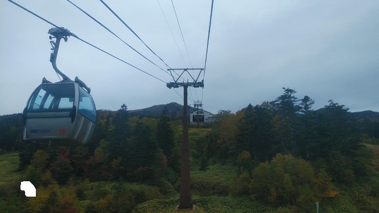 車窓からは周辺の山々が絶景。この日は行きは曇り空で先行き不安な登山だったが、その後快晴に。山頂は雲に隠れてしまったが青空での風景も楽しめた。
