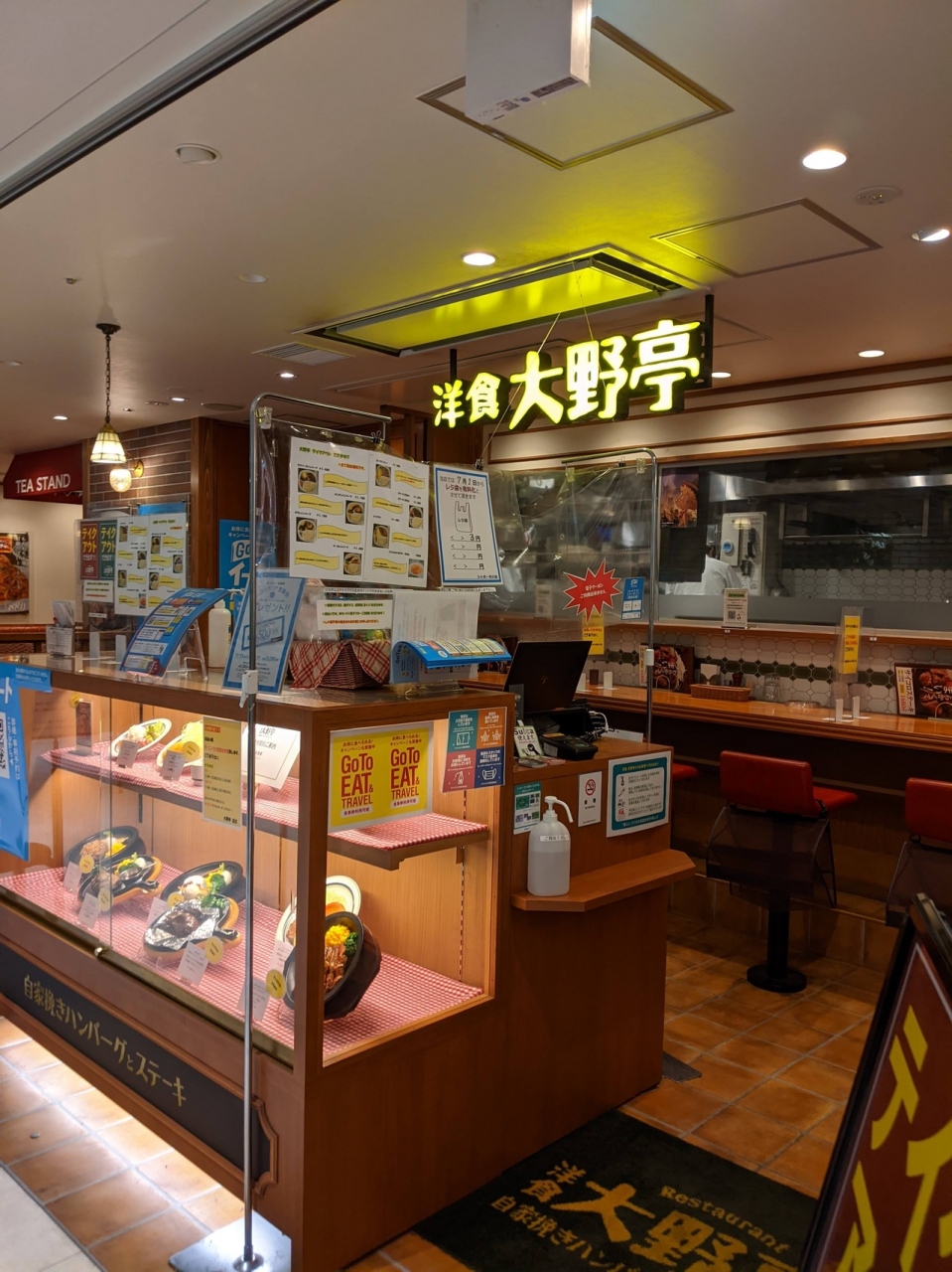 JR市川駅(改札外)の商業施設(シャポー市川)にある洋食レストランです。お店の外からも店内を見渡すことができるオープンなお店です。メニューには、ハンバーグ、ポークジンジャー、メンチカツなどがあります。包み焼きハンバーグは、ホイルに包まれたハンバーグでニクニクしく美味しかったです。