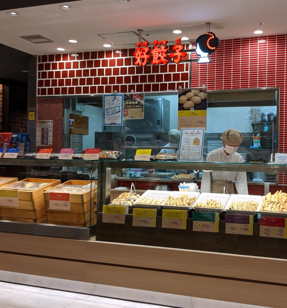 JR市川駅(改札外)の商業施設(シャポー市川)にある餃子の専門店です。テイクアウト専門のお店なので、焼きたての餃子を食べることはできませんが、パオ餃子、ニンニク餃子、チーズ餃子、ニラ餃子など様々な味の餃子を買うことができ、どの餃子も美味しいです。個人的にはニンニク餃子がお薦めです。