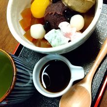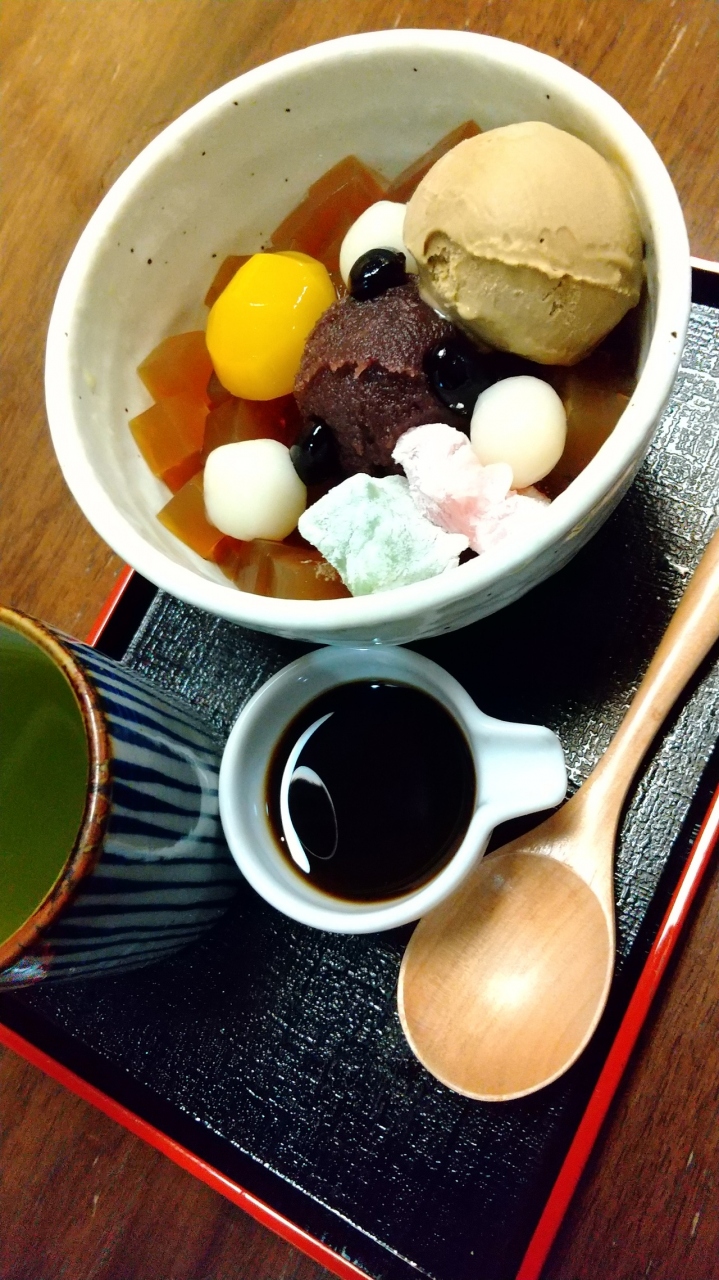 メニューはあんみつやどら焼など和菓子で、雰囲気も昔懐かしい感じがするお店でした。