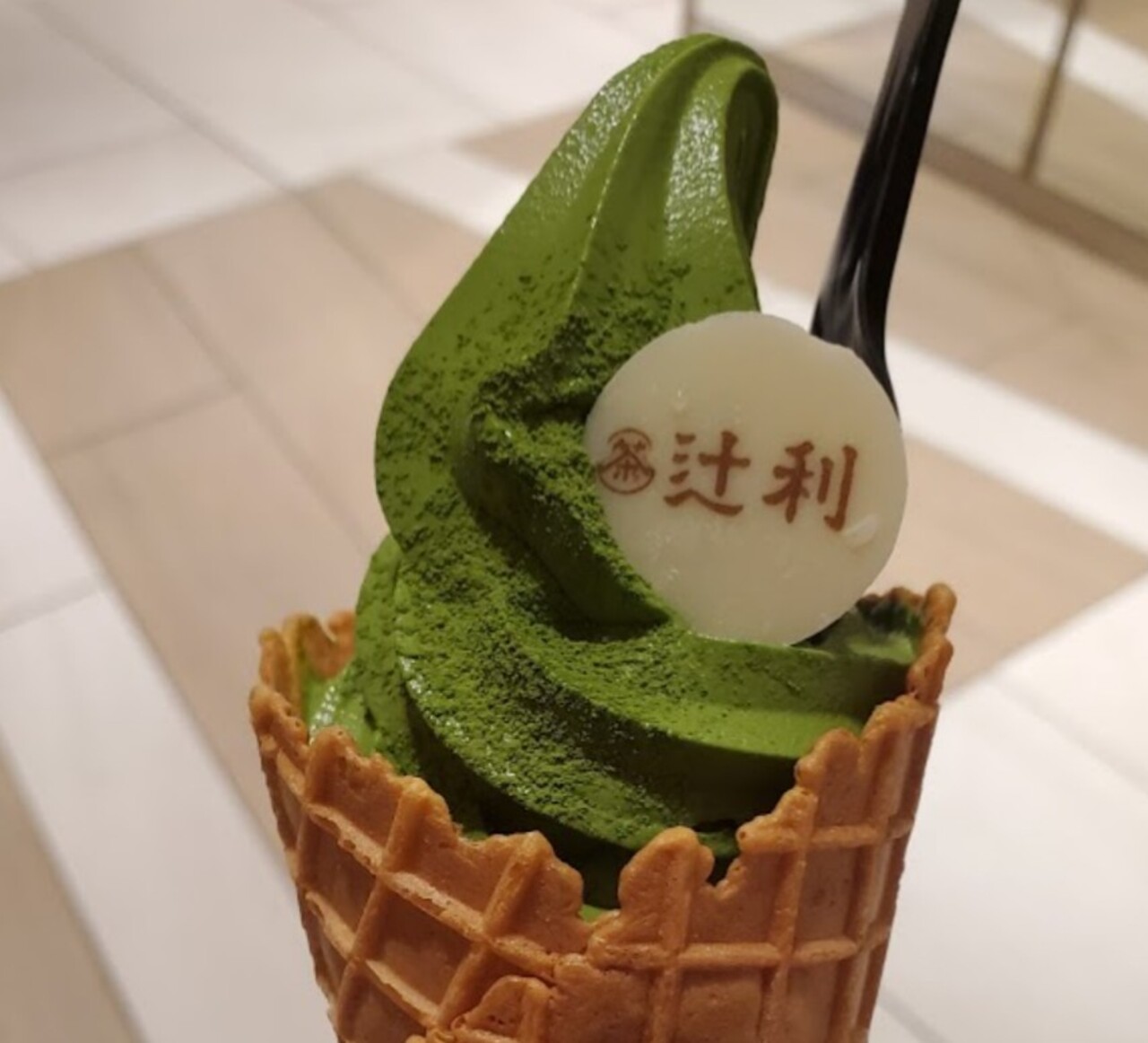 またソフトクリームなどのスイーツを購入することもできます。抹茶のソフトクリームをせっかくなので食べてみました。辻利のネームがトッピングされてます。想像以上に濃くて抹茶がしっかりときいた大人なソフトクリームでした。これを食べると他の抹茶ソフトクリームが食べられなくなるほど美味しいです。