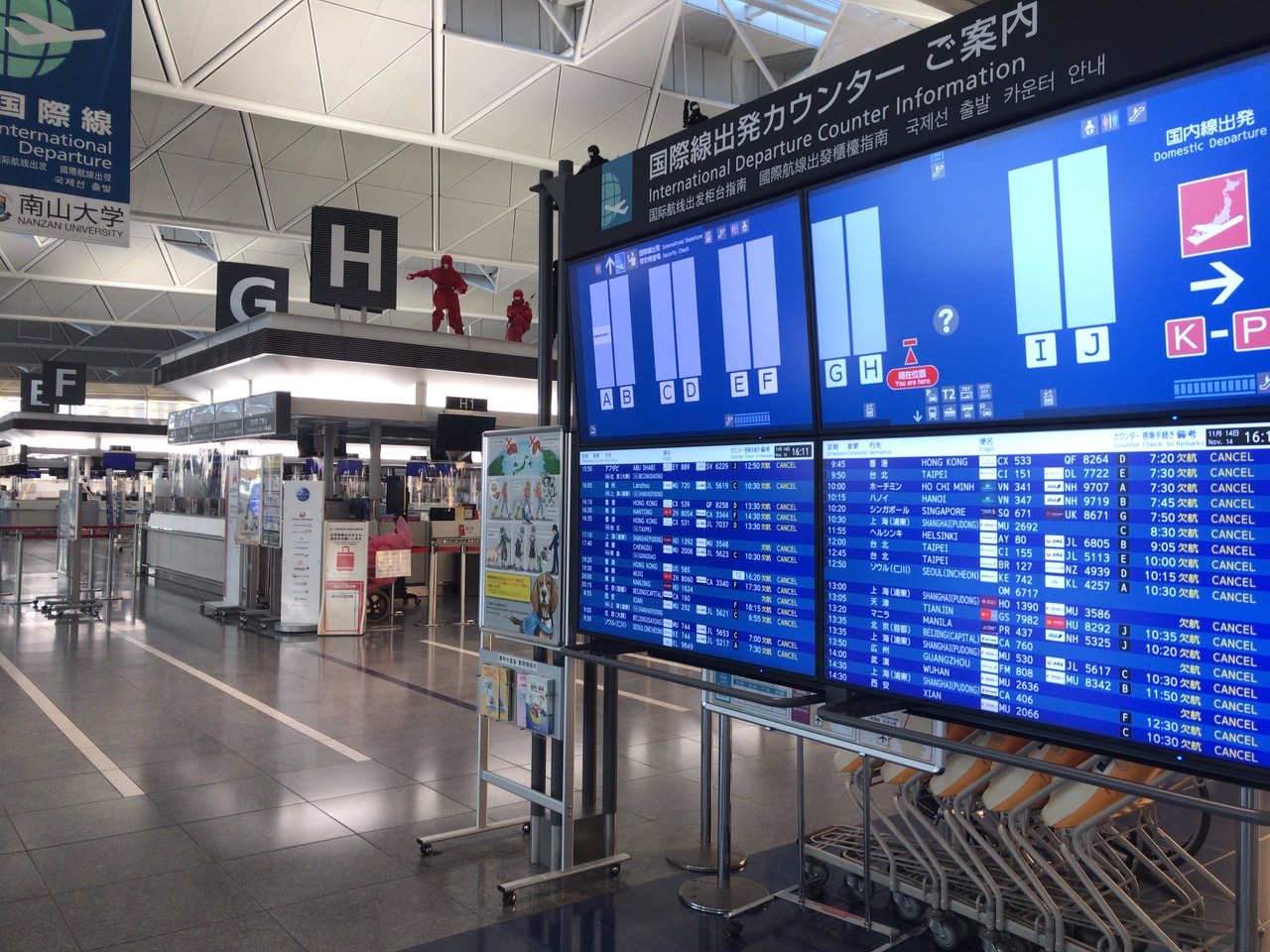 感染症の影響で国際線は欠航。国内線も便数を減らしているので、一日限られた便しか運行していないのにそれなりに大きな空港なので、余計閑散としているのが際立ちます。