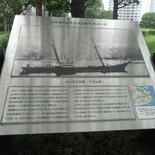 碑には、日本人によって設計、建造された最初の蒸気軍艦「千代田形」の写真が刻まれています。