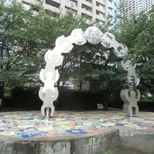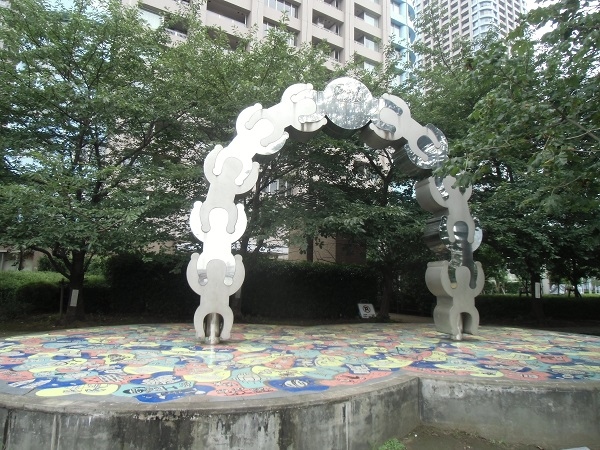そこに人が繋がってゲートのような形になった記念碑があります。