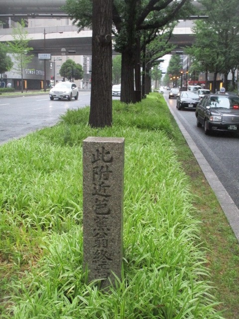 御堂筋の本町と心斎橋の間にあります。歩道にはなく、分離帯の草むらに生えているように見える石碑です。おそらく夜は、分離帯は暗くなるので見つからないと思います。旅好きの松尾芭蕉の句碑は至る所にありますが、終焉の地の石碑はここだけでしょう。先生は最後が大阪で良かったと思ってくれてるでしょうか。