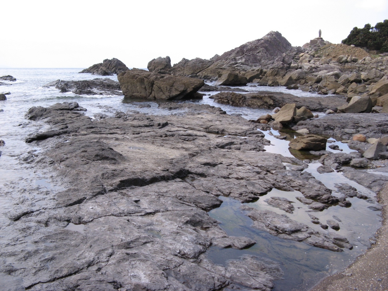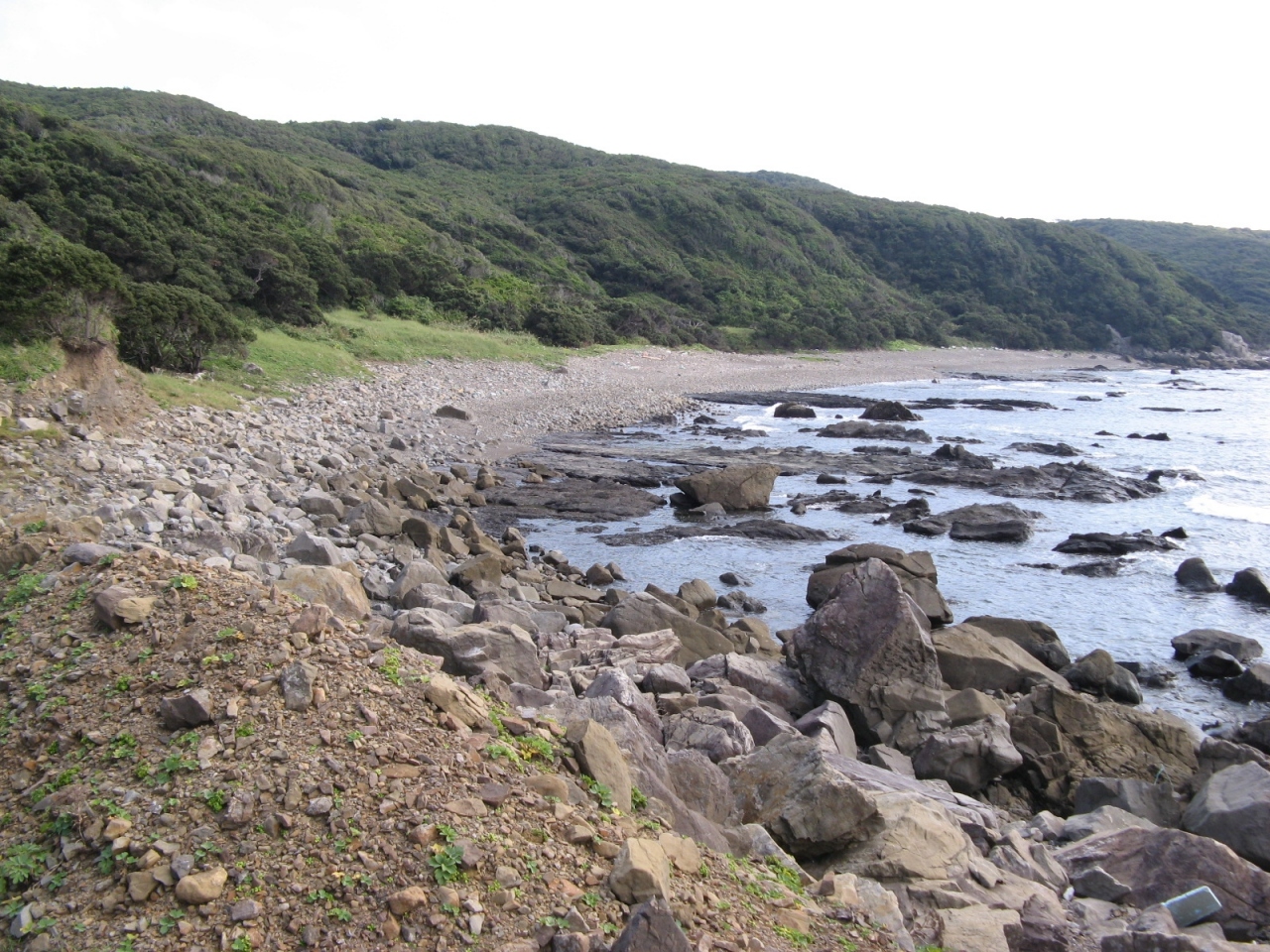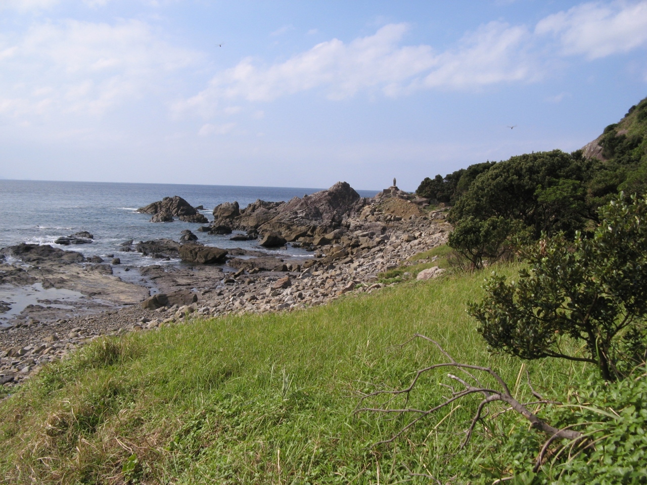 海岸側を歩いて行けば迷わないと思いますが、大川漁港から南下すること約1.5km、砂坂漁港からなら北上すること約1㎞の位置に記念碑はあります。いずれの経路も大きな岩がゴロゴロある海岸で非常に歩きにくいので注意が必要です。