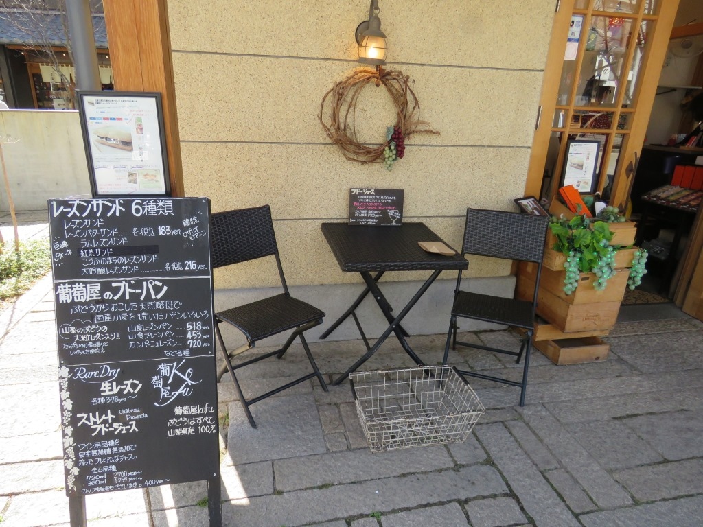 店頭のテラスでレーズンサンドとカフェをいただきました。輸入レーズンとは違った半生の山梨県産レーズンがフルーティで、クリームとサブレが主役のレーズンを引き立てていて美味しい!貴重なレーズンサンドの専門店です。