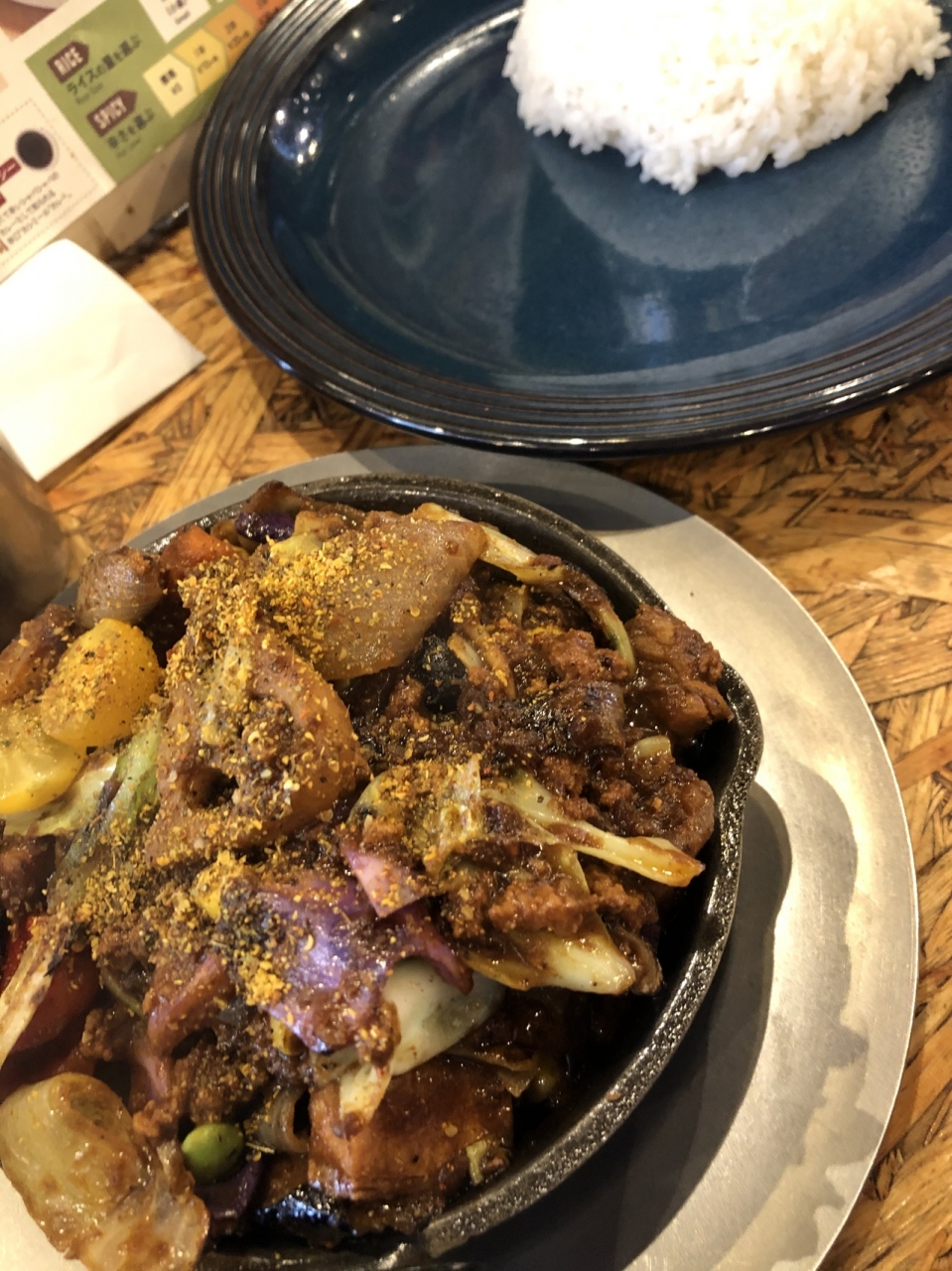 今回はこのお店自慢の野菜カレーにポークを足してみた
