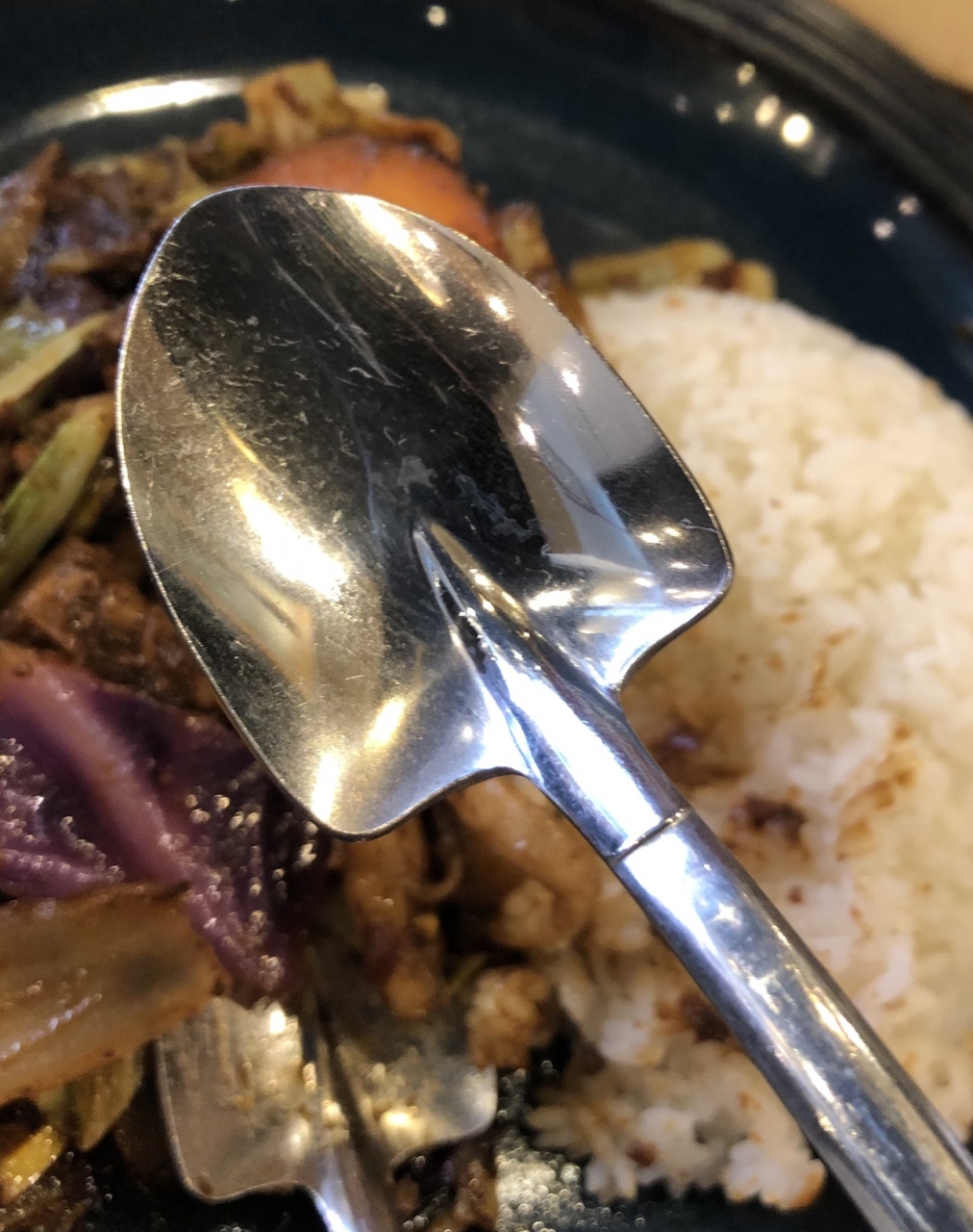 スプーンはシャベルの形、遊びごころがある…食べにくくはない