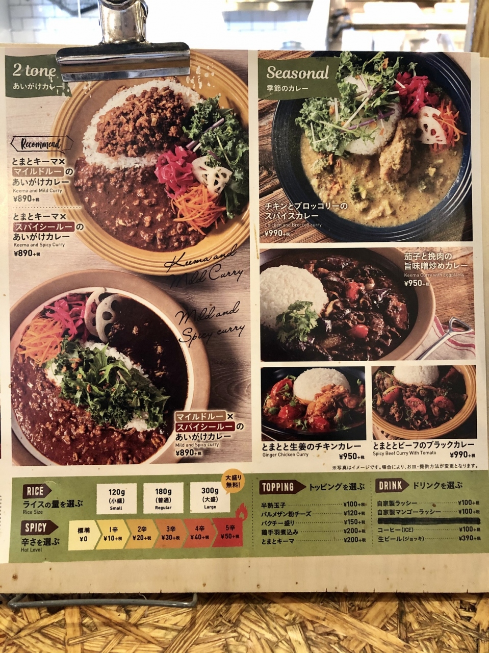 野菜カレーのお店かと思っていたけど、野菜カレーにチキン、ポーク、ビーフを加えたり、キーマカレーなどもあるようだ