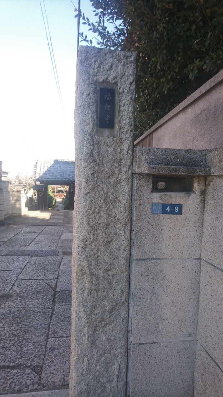 谷中の三崎坂の途中で、北側の路地に入ったところに日蓮宗寺院の福相寺がありました。創建年代は不詳ですが、江戸時代初期の創建と言われています。道路から細い参道が続いており、下がったところに山門と本堂がありました。ひっそりとした雰囲気の寺院でした。