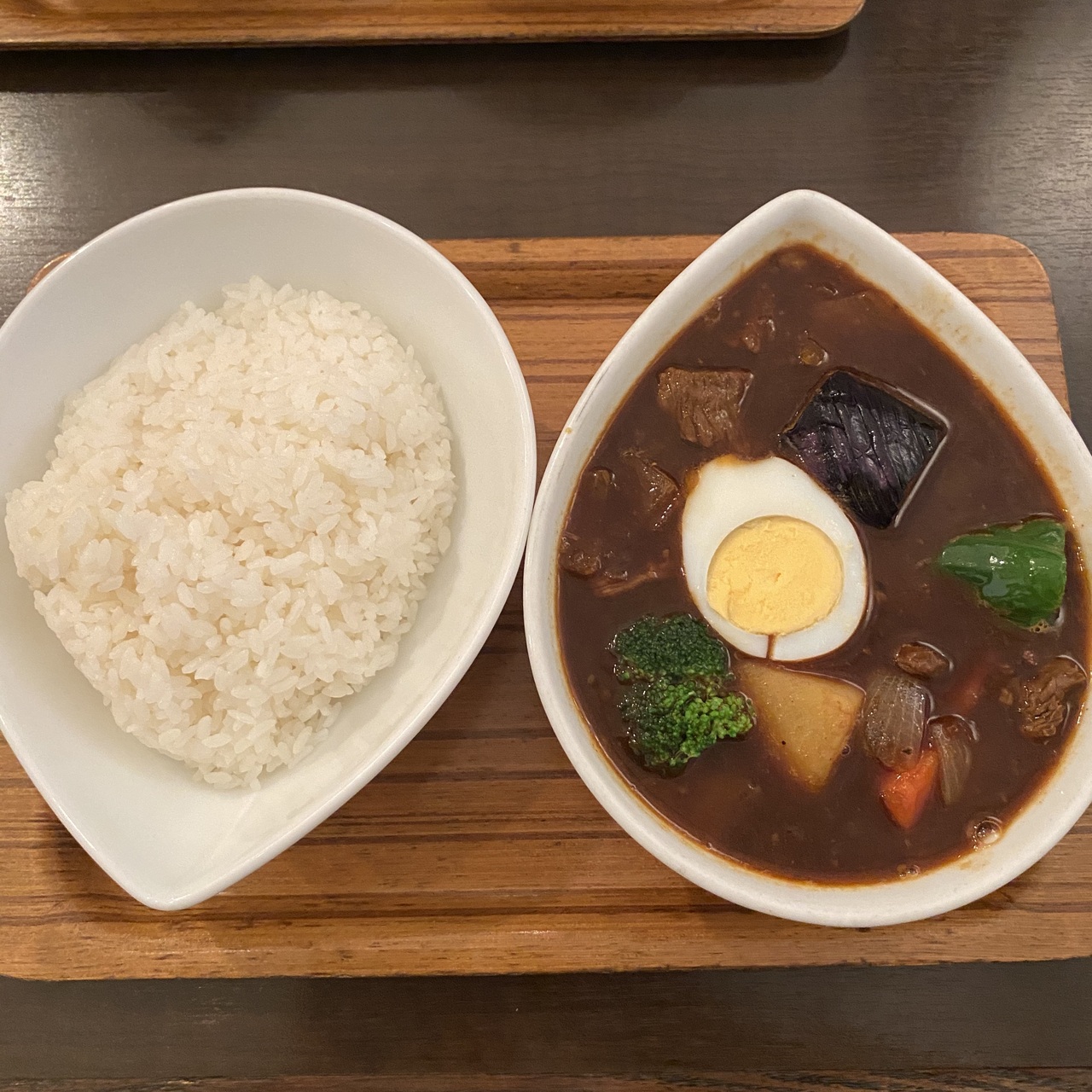 神田カレーグランプリに参加しているお店です。今回は、ビーフカレーを頂きました。カレーは赤と黒が選べますが、こちらは黒のみとなっており、辛さ1で頂きました。さらっとしたカレーで、お肉もゴロゴロしておりおいしくいただけました。