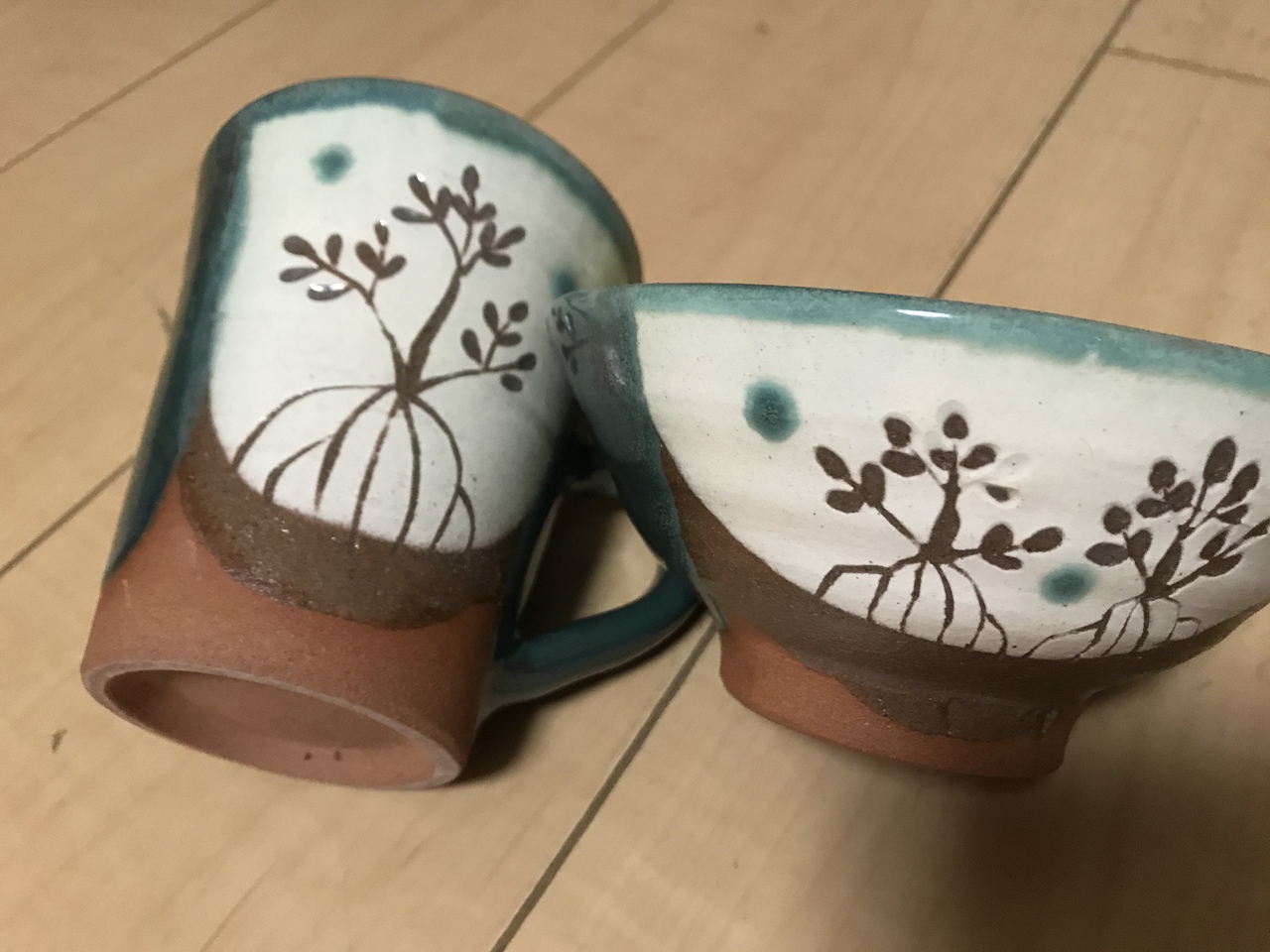 今回は西表の「西表焼青烽窯」さんの、マングローブデザインのお茶碗とマグカップを購入しました。