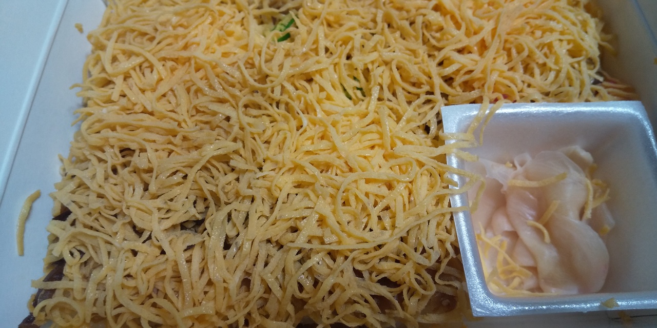 大村にこんな名物があるとは知りませんでした。バッテラ風の押し寿司ですが錦糸玉子がたっぷりまぶしていてカテゴリー的に押し寿司のようです。お店は元祖を名乗っていてこちらが始めたようです。食べやすいお寿司で長崎空港の売店でお土産が買えます