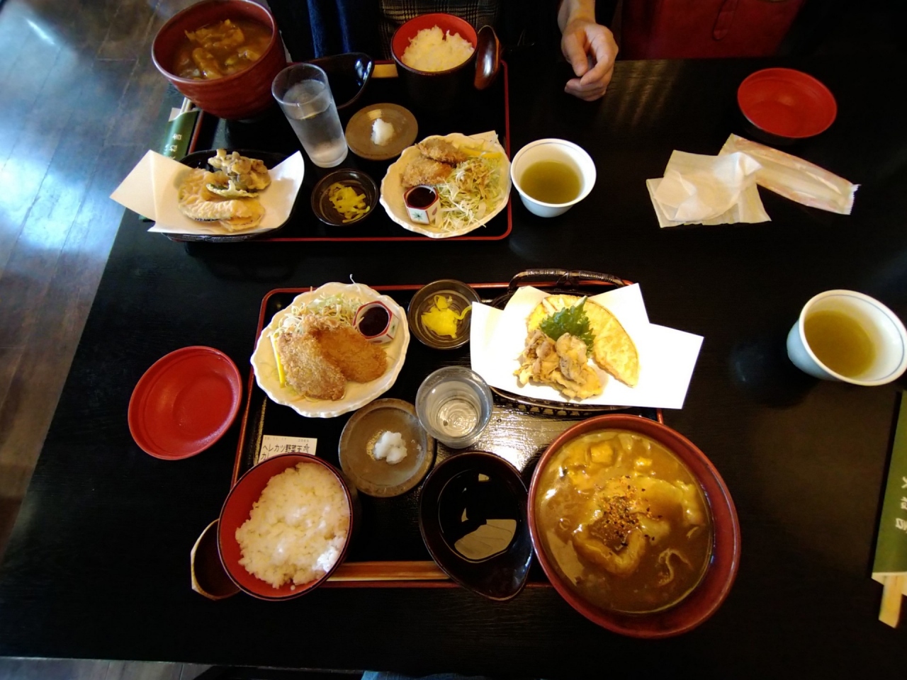 結果的にボリューム感のある”本日のランチA”カレー蕎麦定食にしました、内容はヘレカツ・野菜天婦羅・豚カレー蕎麦とご飯ですが、蕎麦の量がたっぷりなので定食に付く小丼では無いです。食べ終わる頃にはお腹はパンパンに成り過ぎて消化剤を飲んだほどです。