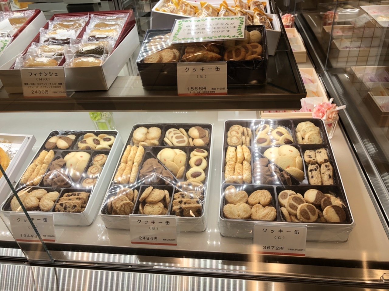 ショーケースはある程度横幅があり、ラムボールのあたりは人が混んでいたのですが、はじっこのクッキー缶がとてもリーズナブルでびっくり!今度買ってみようと思いました。