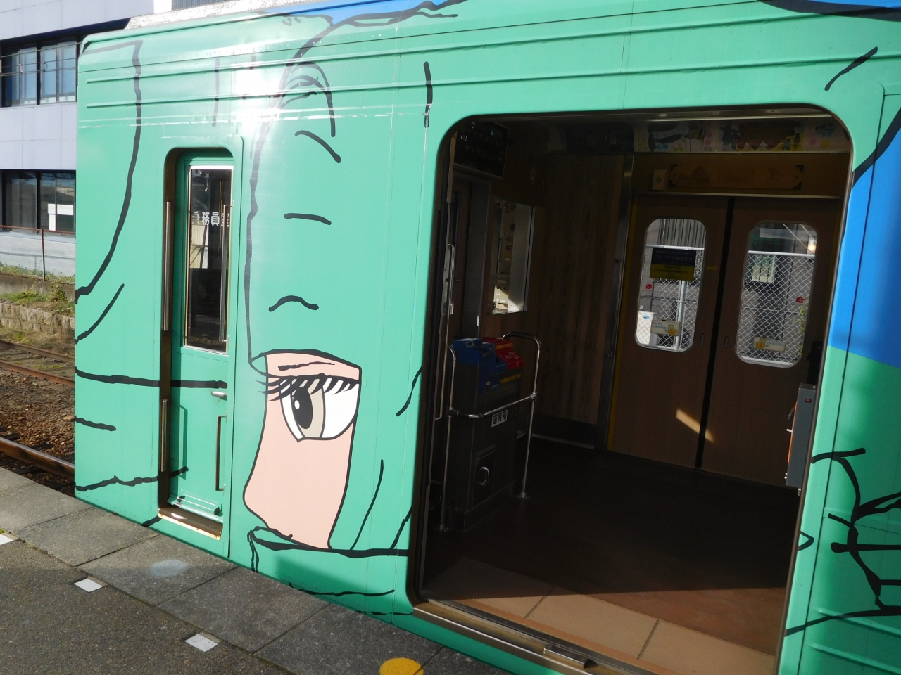 忍者列車という観光列車が不定期で運行しています。電話で問い合わせると、何時の列車がそうか教えてくれます。