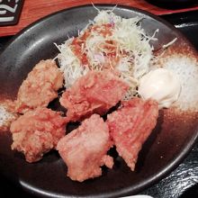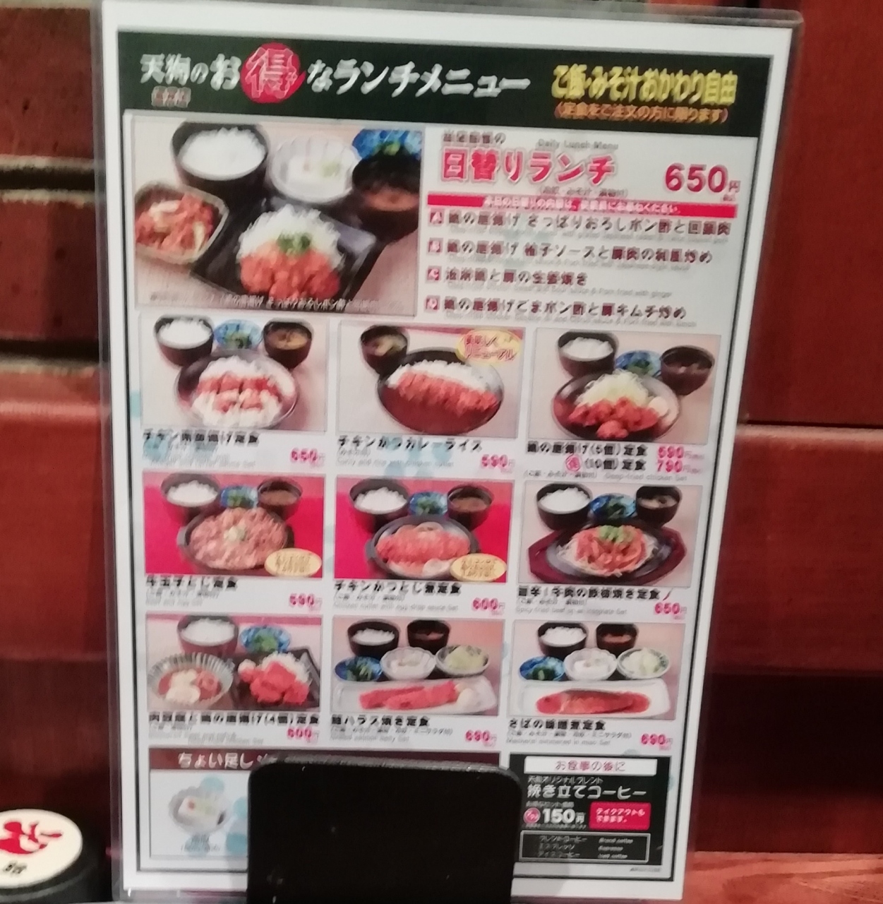 JR新橋駅銀座口から徒歩3分ほど、銀座ナインの地下にある天狗です。久しぶりの利用ですが、店員さんの対応も良く、一番お気に入りの天狗です。唐揚げ定食5ケを注文、即、配膳。この店、ご飯が美味しいんですよね。アツアツで。味噌汁もアツアツ。オススメです、是非。