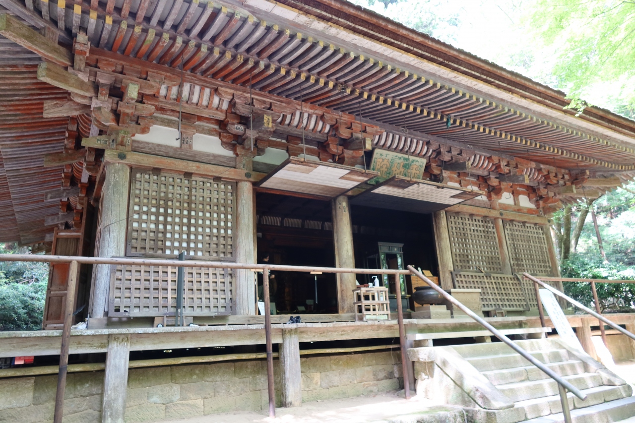 室生寺の金堂のある場所から更に奥の石段を登った先にあるお堂が灌頂堂です。鎌倉時代後期に建てられた檜皮葺入母屋造りの建物で、このお堂では灌頂が行われるので、堂室生寺の本堂と言って良いお堂です。