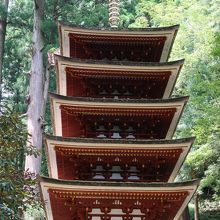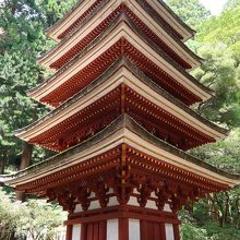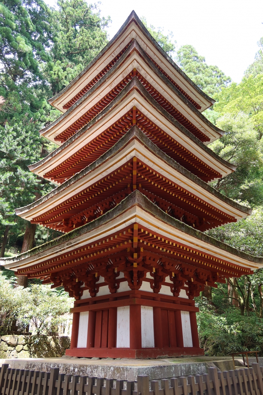 年の台風で大破する前。その時のすがたはひなびた感じが美しい、檜皮葺の小さな五重塔の印象がありましたが、修復され塗装し直した姿はちょっと派手な感じが私には否めませんでした。しかし、小さな五重塔の姿は何度みても美しいです。