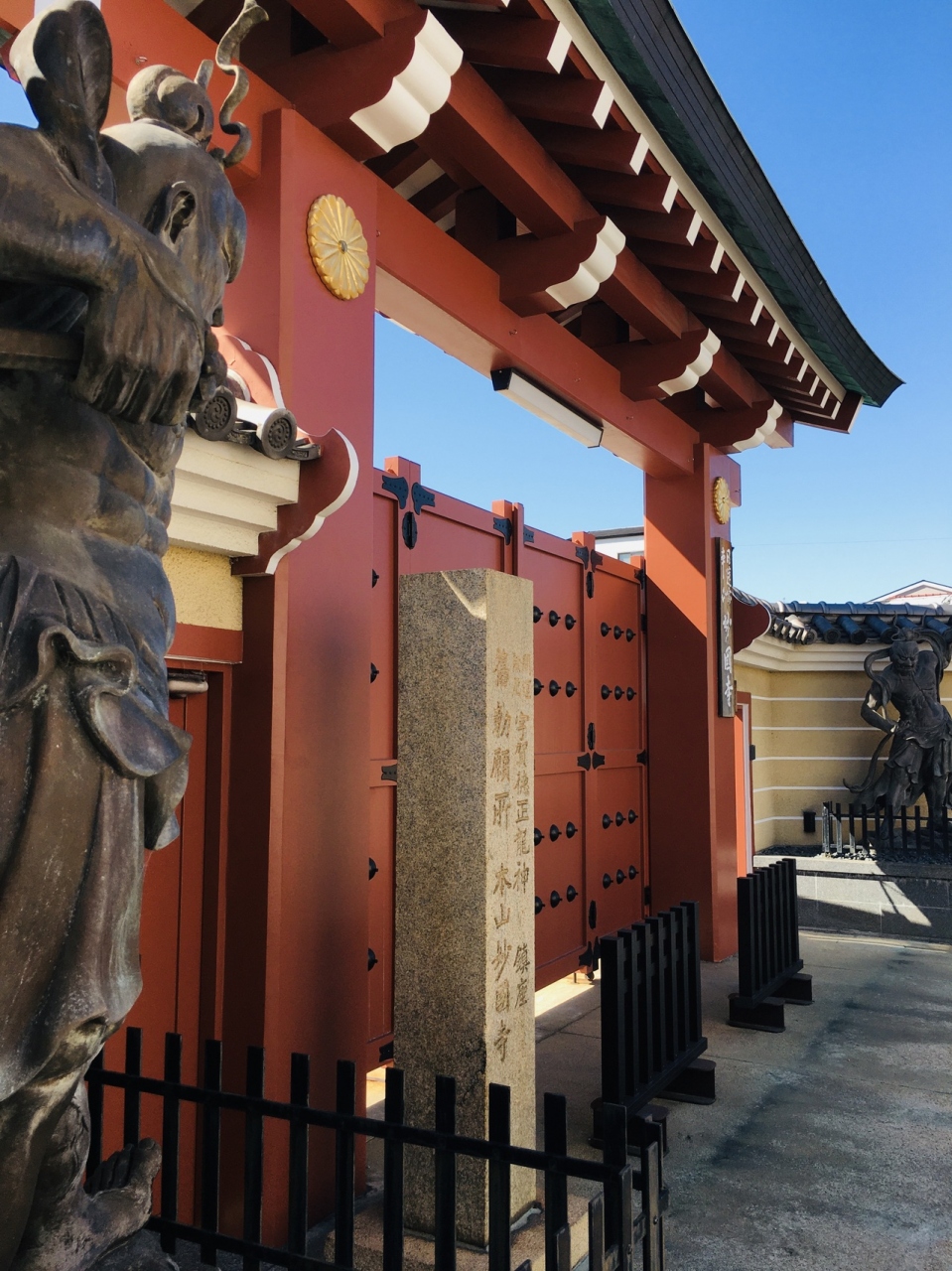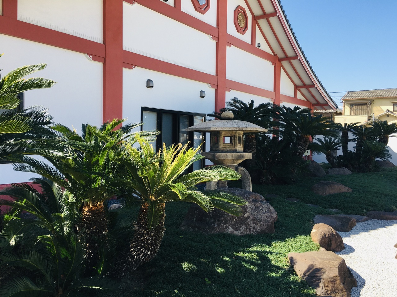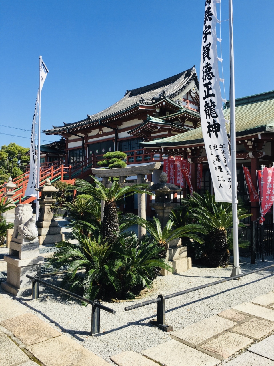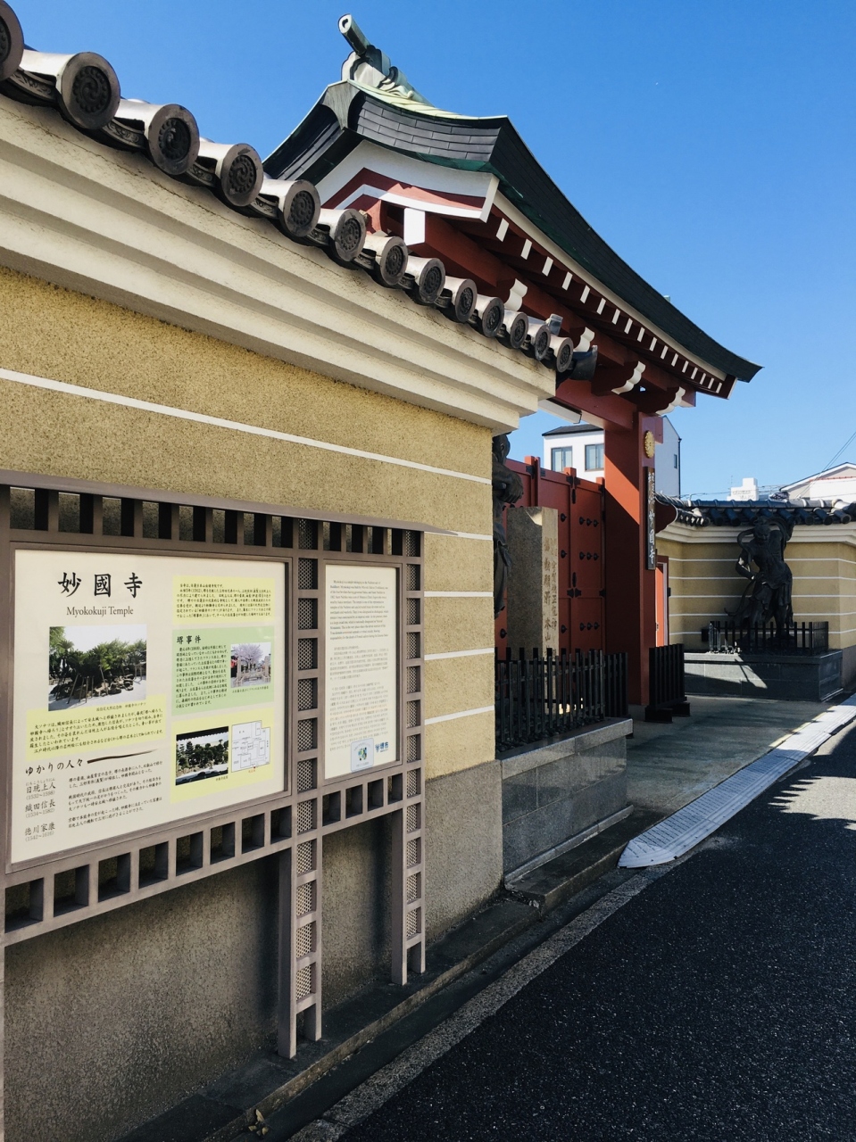 幕末にフランス兵との間で起った堺事件の地で土佐藩士11人上切腹した地でもあり、本能寺の変時、徳川家康が寄宿した寺でもあります。境内は小粒の砂が巻かれ松が見事でした。赤い色の建物が多く、蘇鉄がいくつかあるので南国風の感じでした。