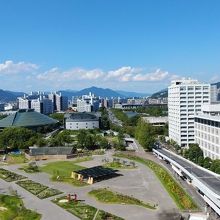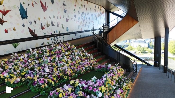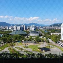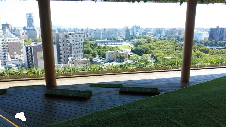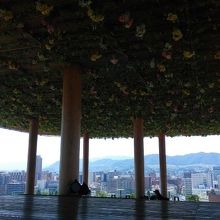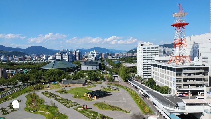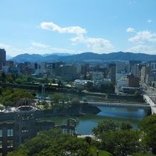 原爆ドームに隣接する複合ビルに設けられた展望施設。展望階自体はそれほど高い位置にはないが、風を感じる構造になっている。人工芝の上で寝そべって過ごしている人もたくさん。他の展望台にはない楽しみ方ができそうだった。残念ながら風を受けるフロアは窓ガラスの代わりにネットが張られていて写真を撮ると写り込んでしまう。一つ下のフロアはガラス張りの普通の展望施設なので撮影はこちらがよかった。