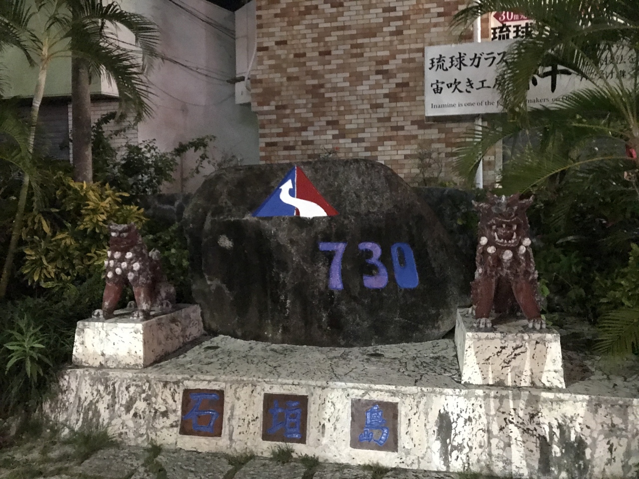 石垣島の繁華街のスクランブル交差点にある、記念碑です。
