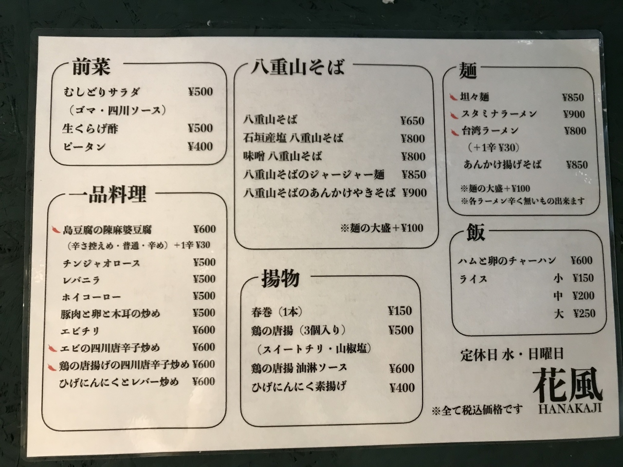 四川風中華料理をメインに、八重山そばや麺類があるので、飲んだ後の2軒目や〆飯に利用できるようになったのが良かったです。