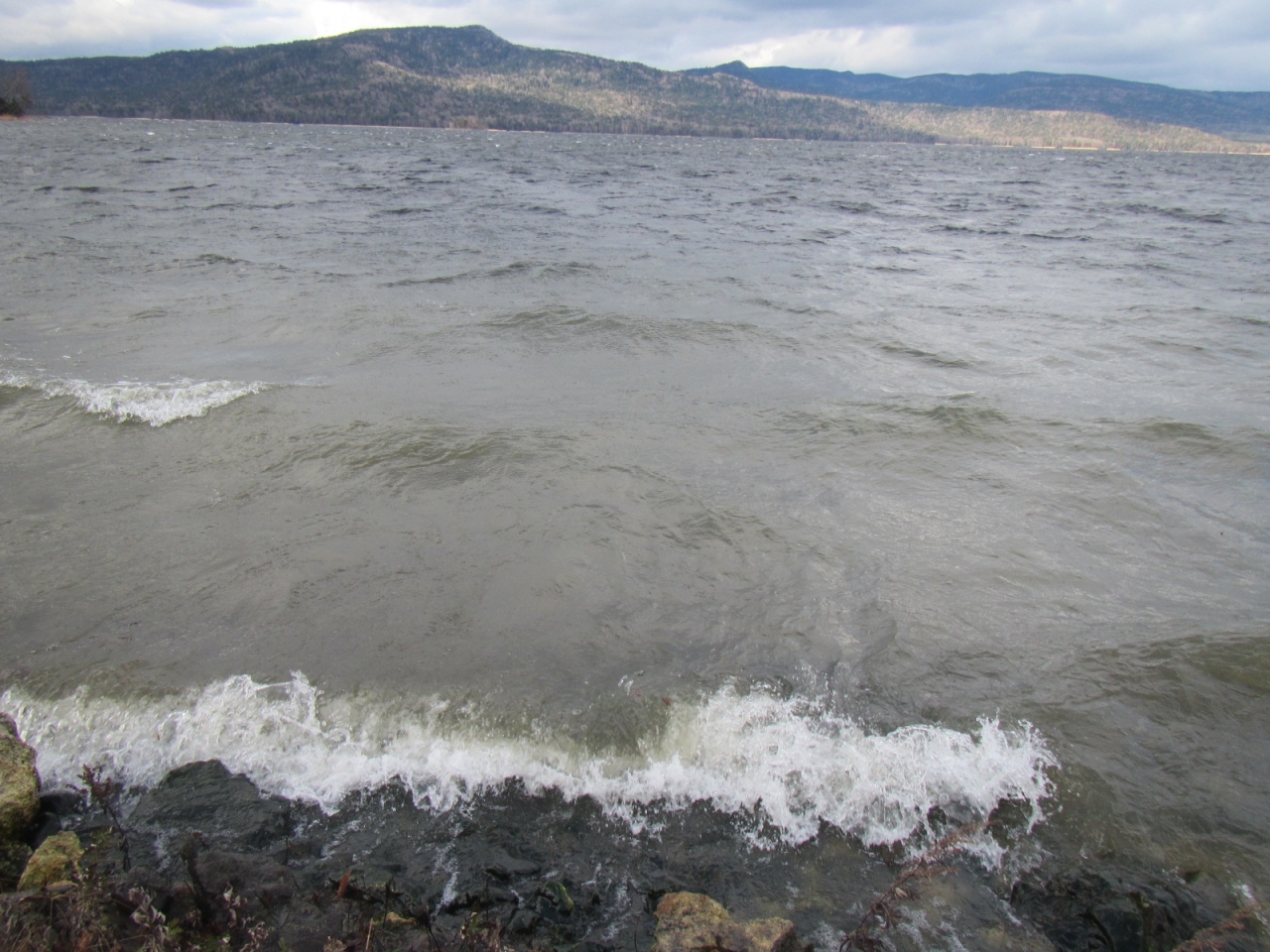 湖岸のコースを行くと、木々の合間から湖の景色が見られますが、湖岸にそびえる雄阿寒岳は木々に隠れがちで、また、角度的にも広い湖の背景にはなかなか見えにくいです。